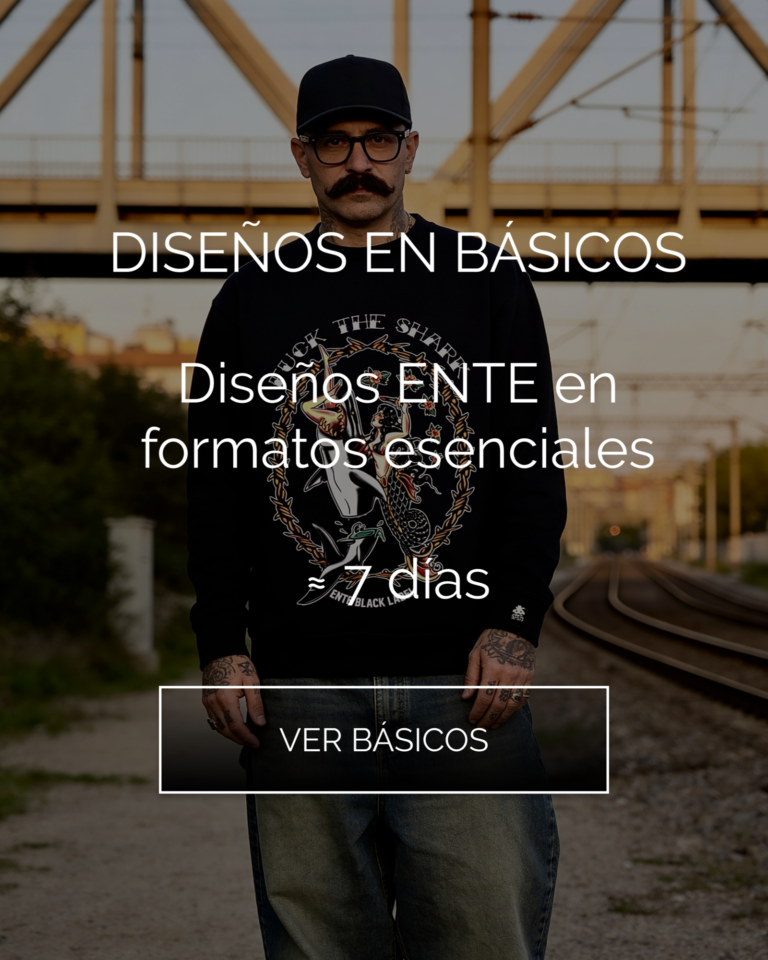 Piezas más calle. Más directas. Diseños ENTE aplicados a prendas concretas. Aquí no eliges formato ni diseño: compras lo que ves. ⏳ Producción bajo pedido · ~10 días